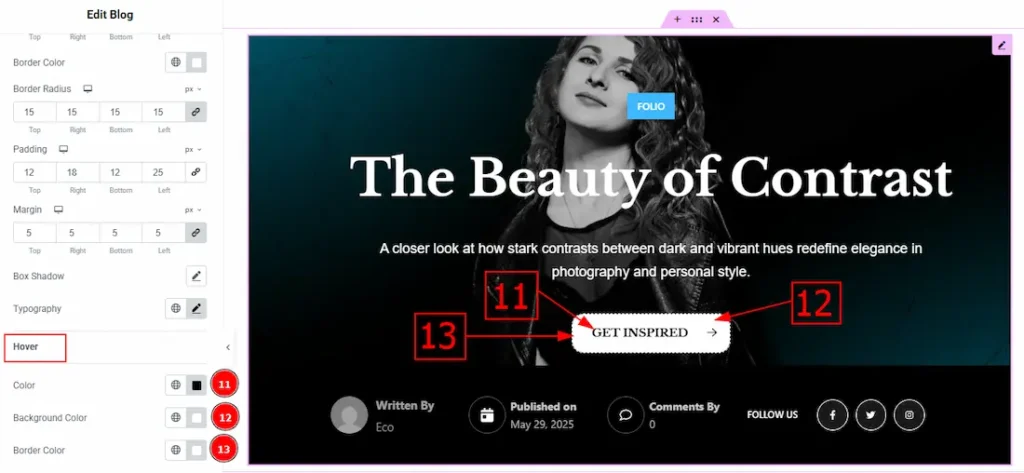 9. Box Shadow: You can add the shadow effect to the button with this option.