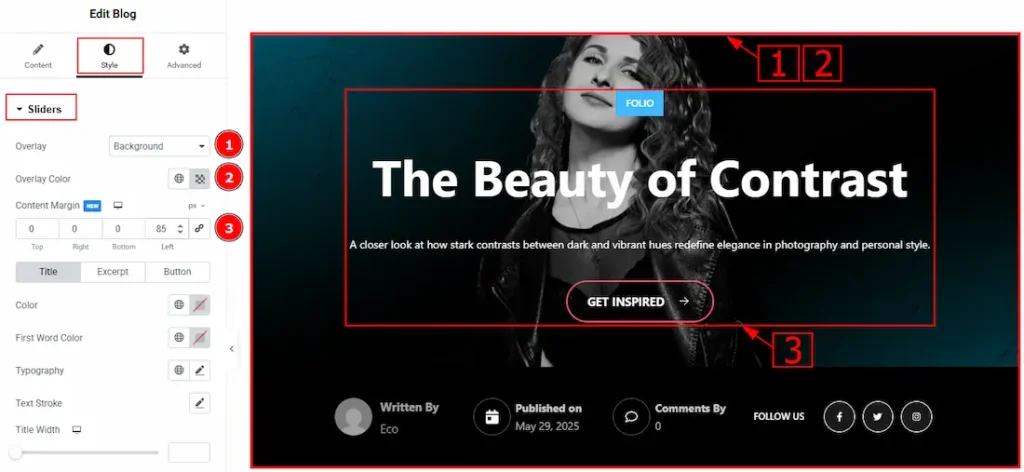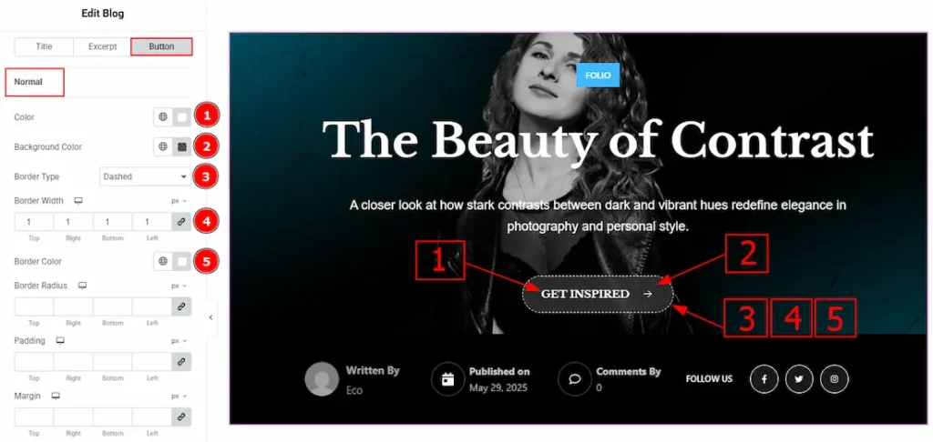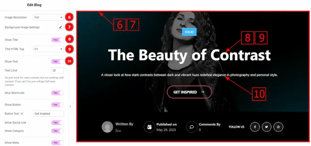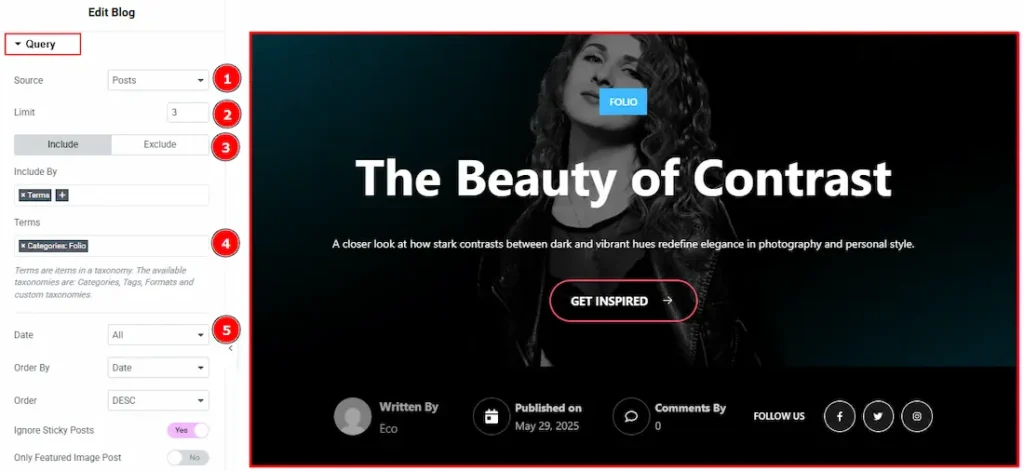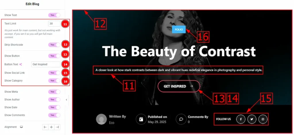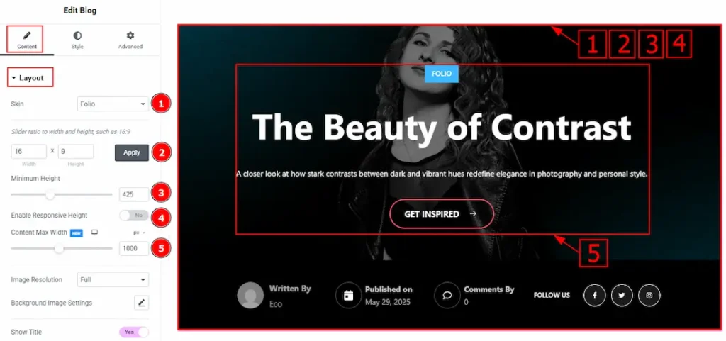 You can also watch the video tutorial to learn more about the Blog widget with Folio Skin. Please visit the demo page for examples.