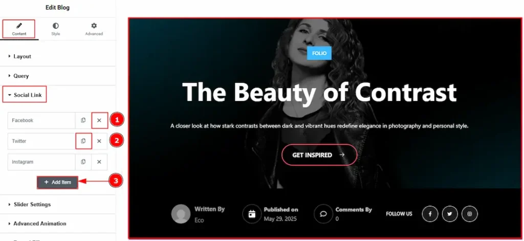 1. Close Item: You can delete the Slider item by clicking the Close icon button.