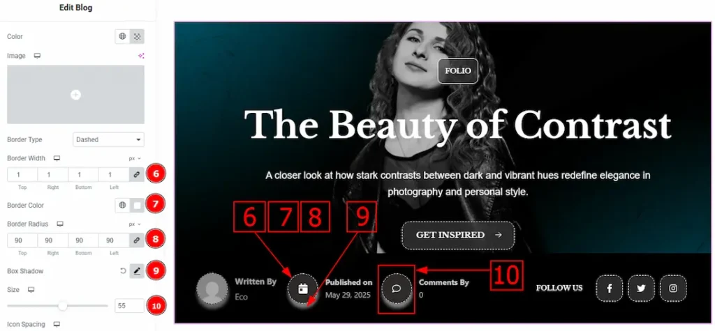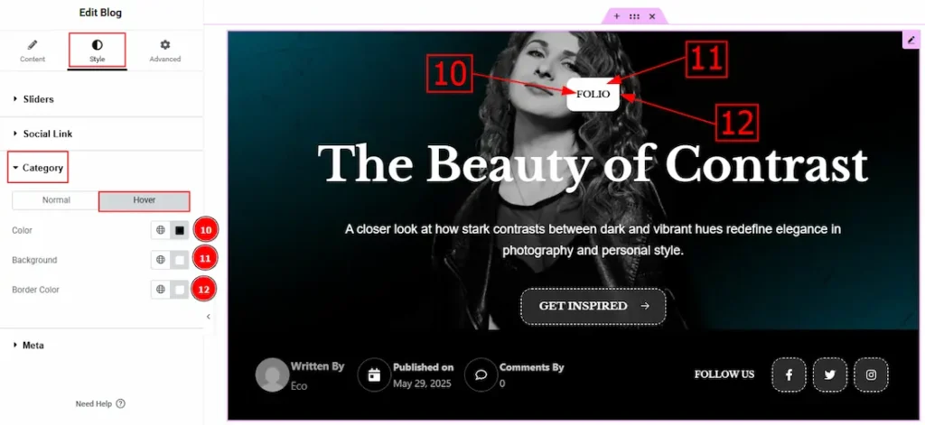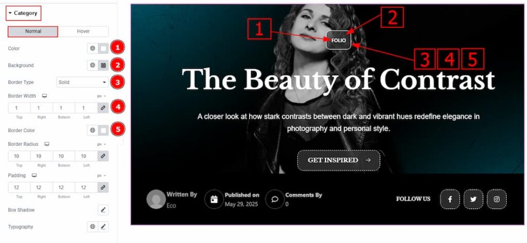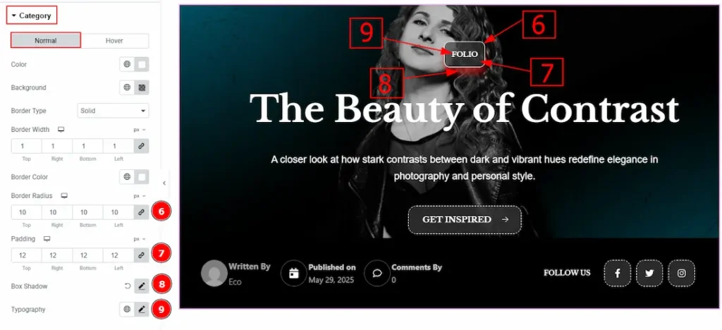 8. Box Shadow: You can add a shadow effect to the category with this option.