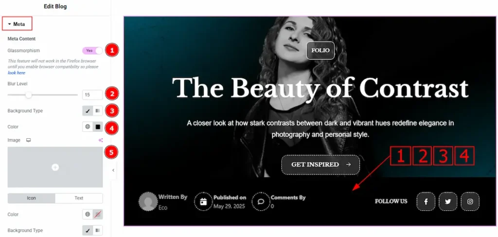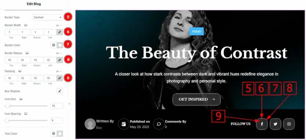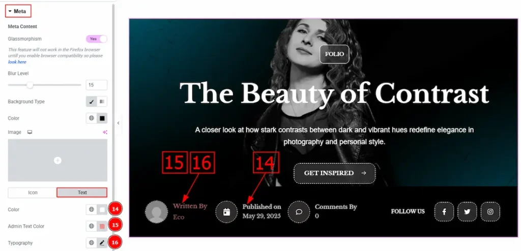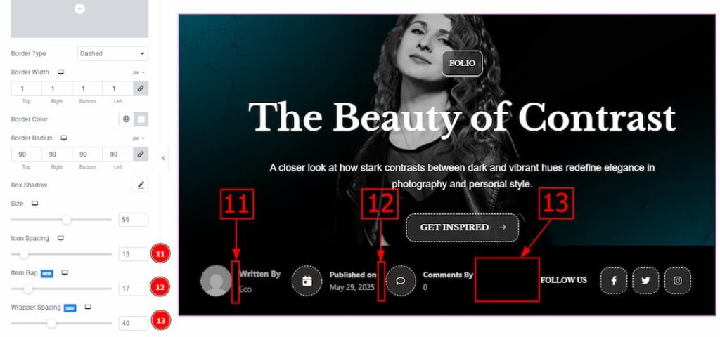 13. Wrapper Spacing: This option allows you to adjust the space between the meta and the social icon field.