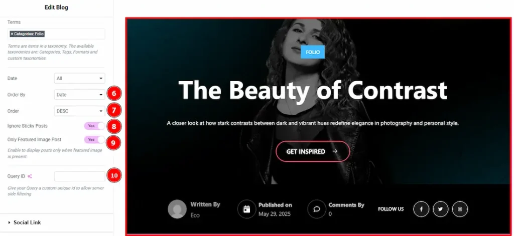 9. Only Featured Image Post: Enable or disable the switcher to show or hide the featured image post.