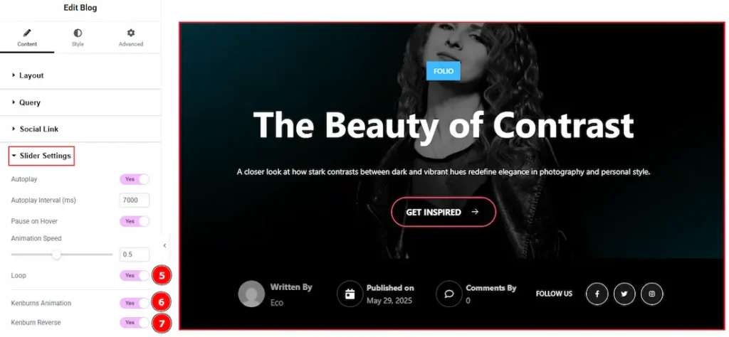 3. Pause on Hover: Enable the switcher to pause autoplay when the user hovers over the slider.