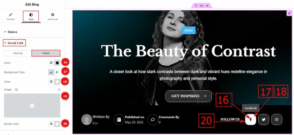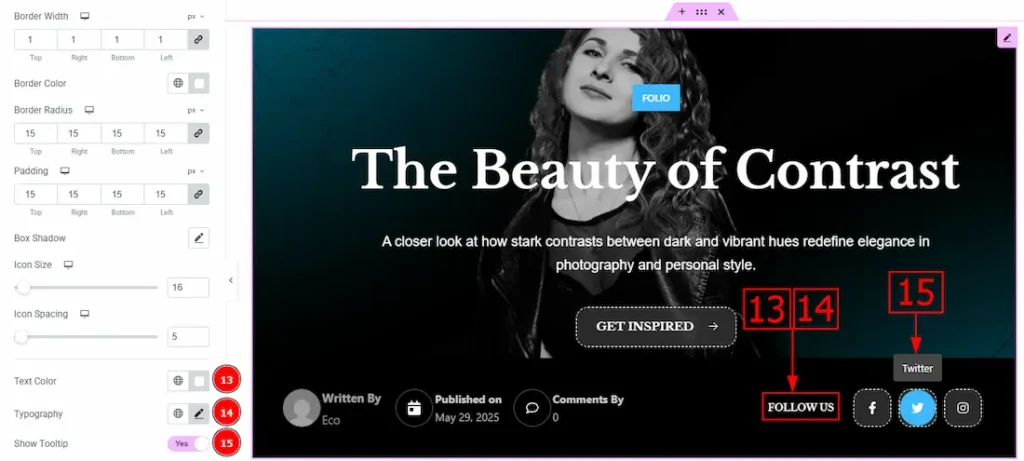 15. Show Social Link: You can show the social icon to the audience by enabling this option.