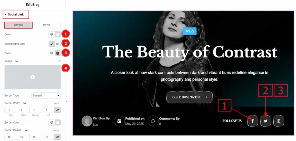 In this Section, we have two tabs. These are Normal & Hover. Let’s start with the Normal Tab –
