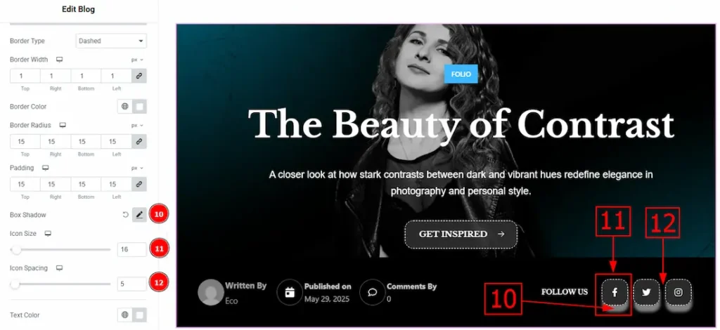 12. Icon Spacing: This option allows you to adjust the space between the social icons.