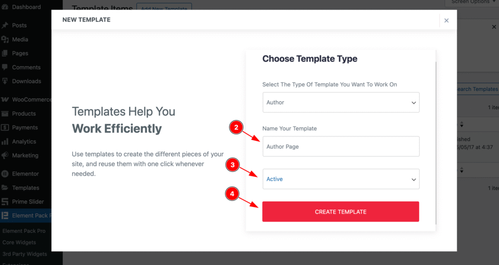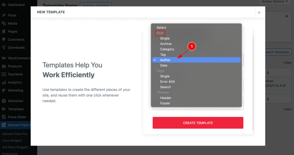 - Name your Template: Set the name for the Template e.g.: Author page.