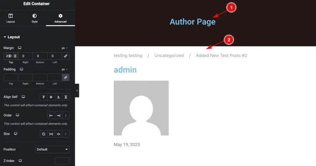 - Navigate to any Post related page and click on the Author of any posts. It will redirect to the Auhor Theme Builder page.