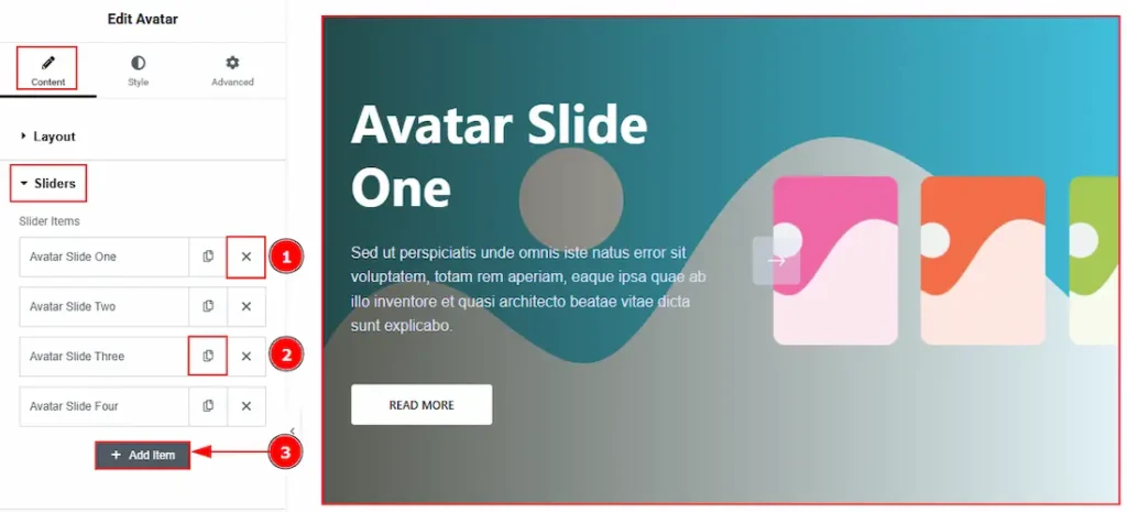 1. Close Item: You can delete the Slider item by clicking the Close icon button.