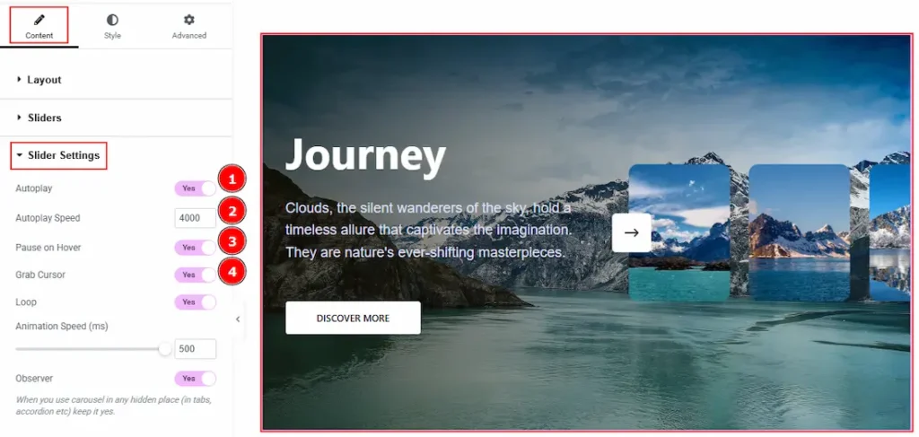 3. Pause on Hover: Enable the switcher to pause autoplay when the user hovers over the slider.