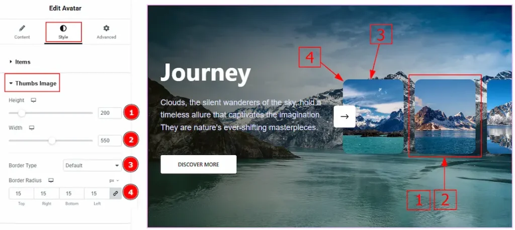 2. Width: You can adjust the width of the thumbs with this option.