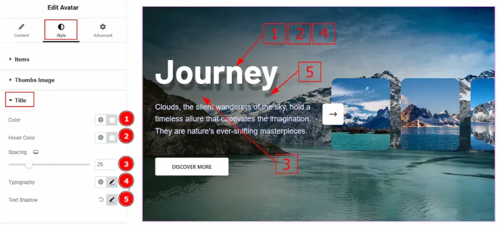 5. Text Shadow: This option allows you to add a shadow effect to the title text.