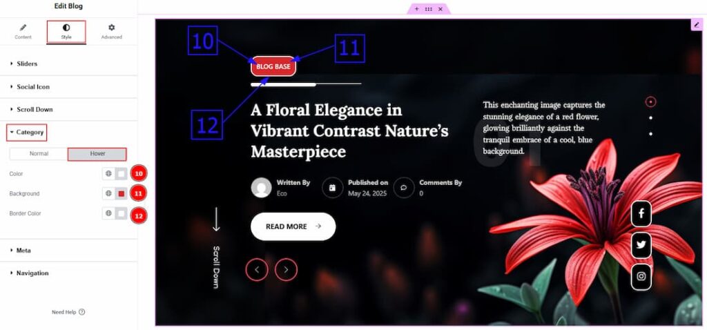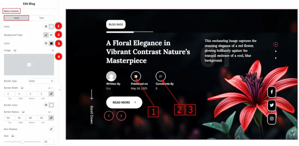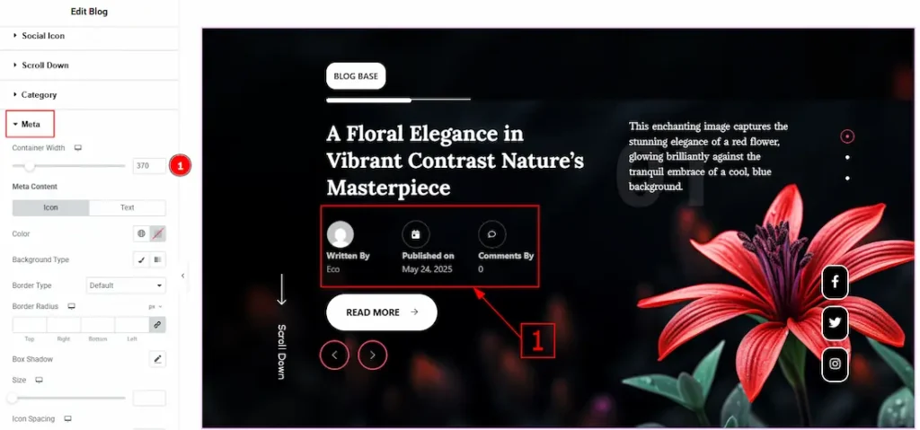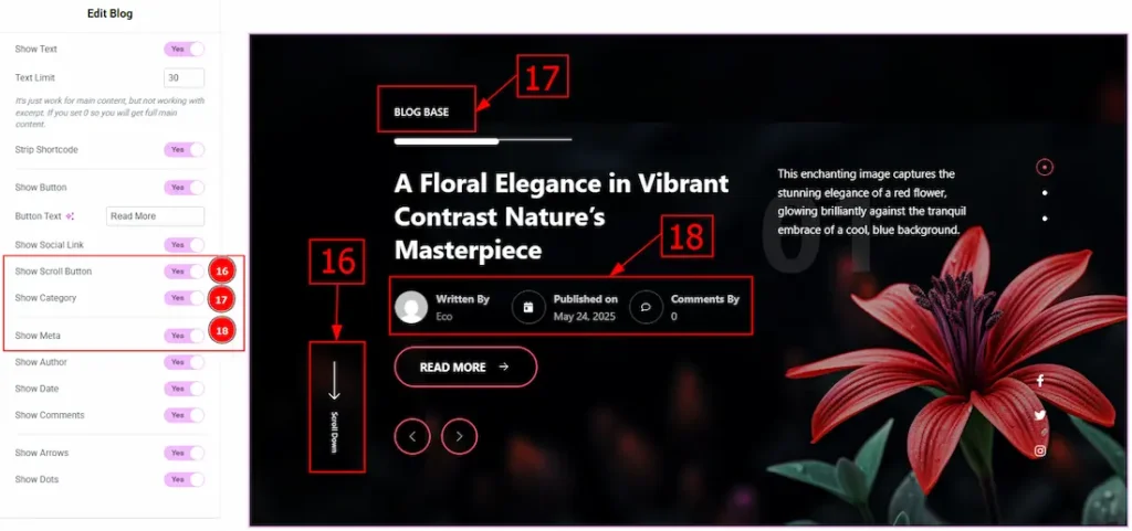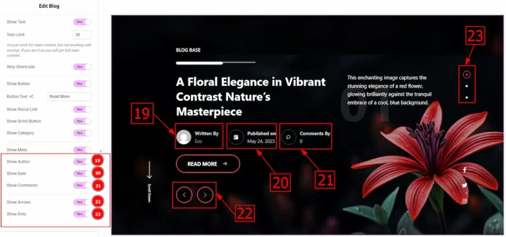 18. Show Meta: Enable or disable the switcher to show or hide the meta from the slider.