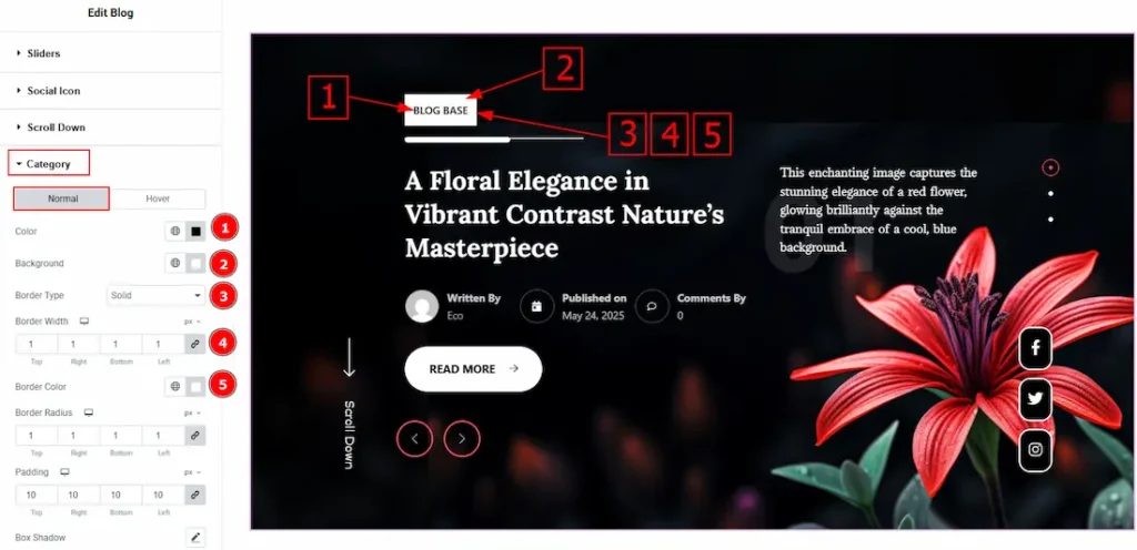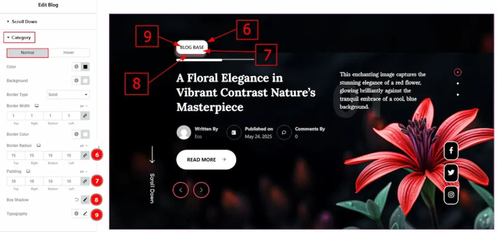 8. Box Shadow: You can add a shadow effect to the category with this option.