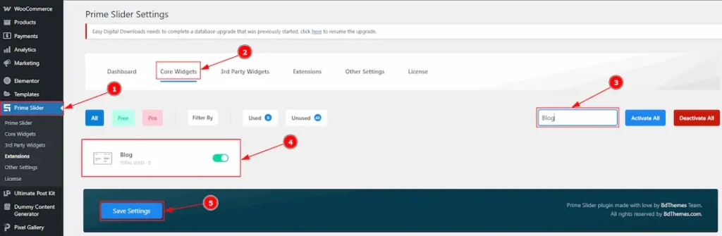 To use the Blog widget from Prime Slider, first, you have to enable the widget.