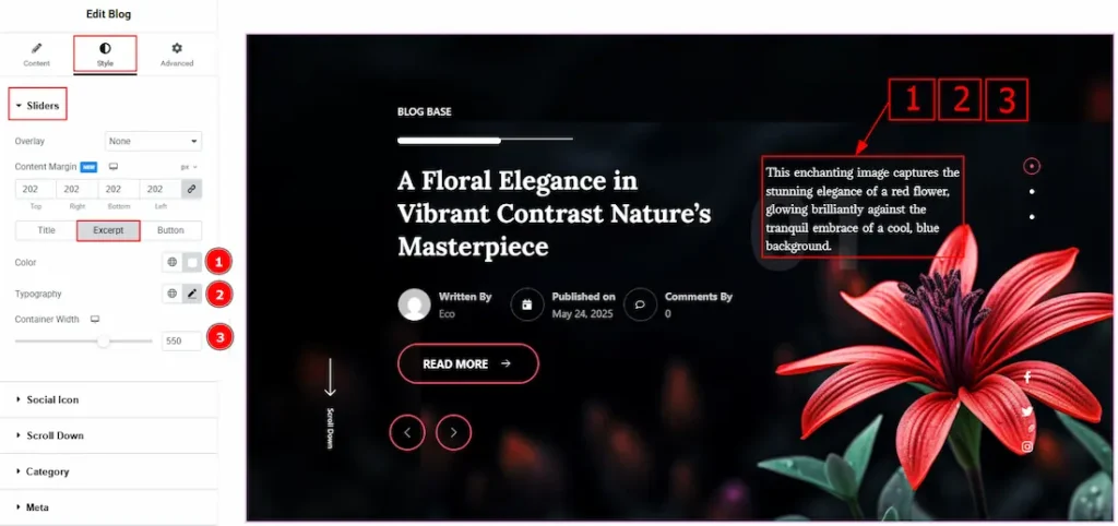 3. Container Width: You can adjust the width of the excerpt with this option.