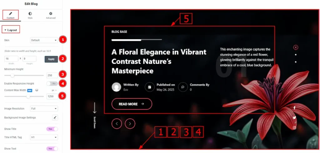 In this documentation, we will discuss the customization of the Blog Slider Default Skin, brought to you by the Prime Slider addon for Elementor.