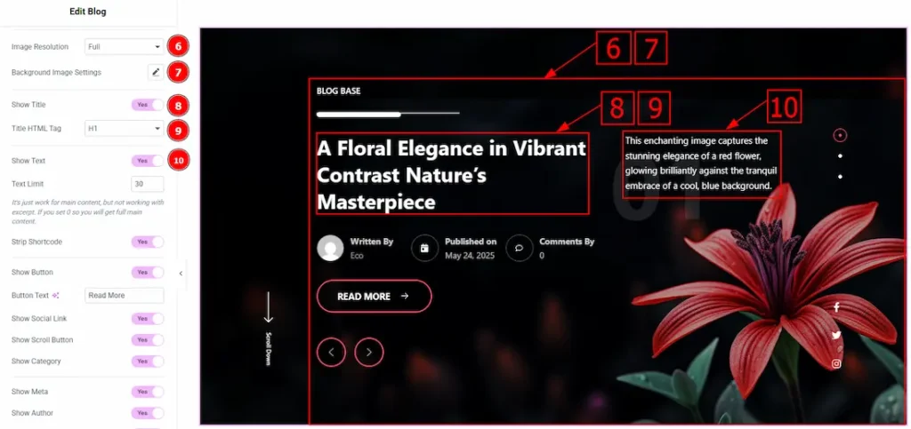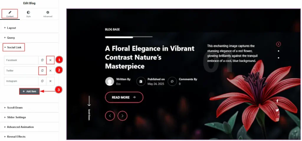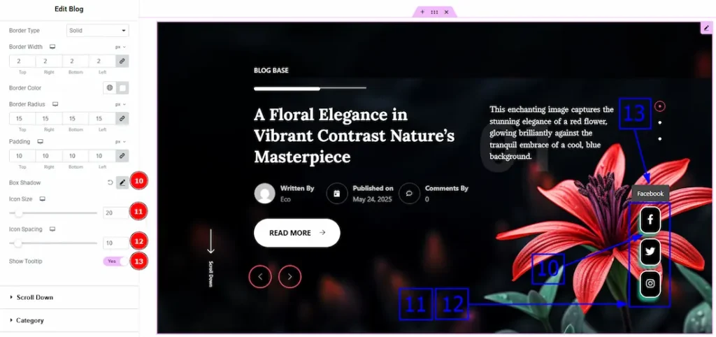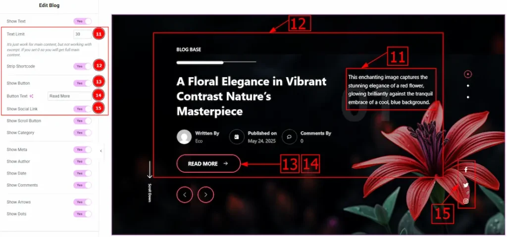 15. Show Social Link: You can show the social icon to the audience by enabling this option.