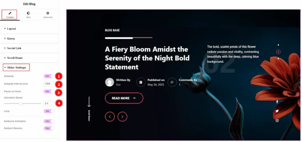 2. Autoplay Interval (ms): This option lets you set the time delay between each slide transition.