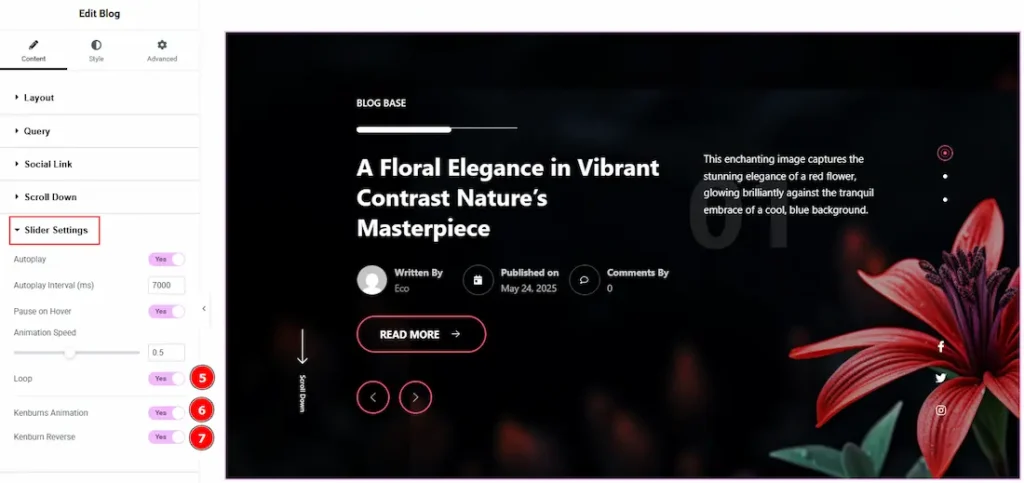 7. Kenburn Reverse: Enable the switcher to reverse the Kenburns animation direction (zoom-out instead of in, or pan the other way).