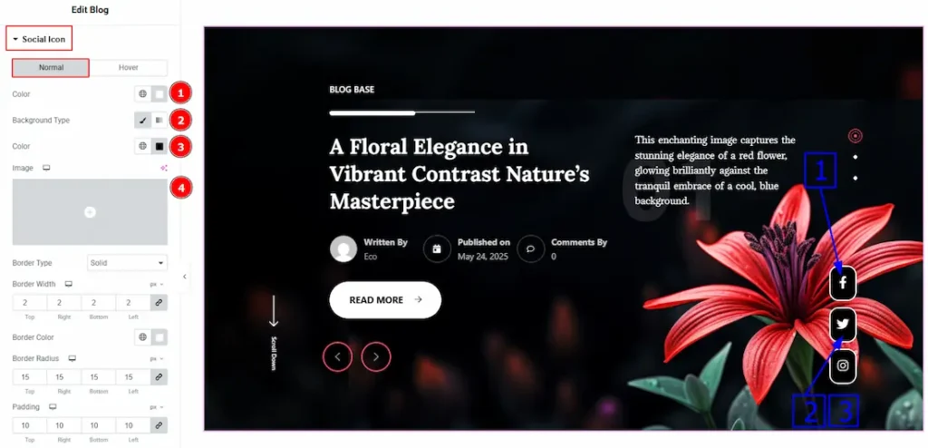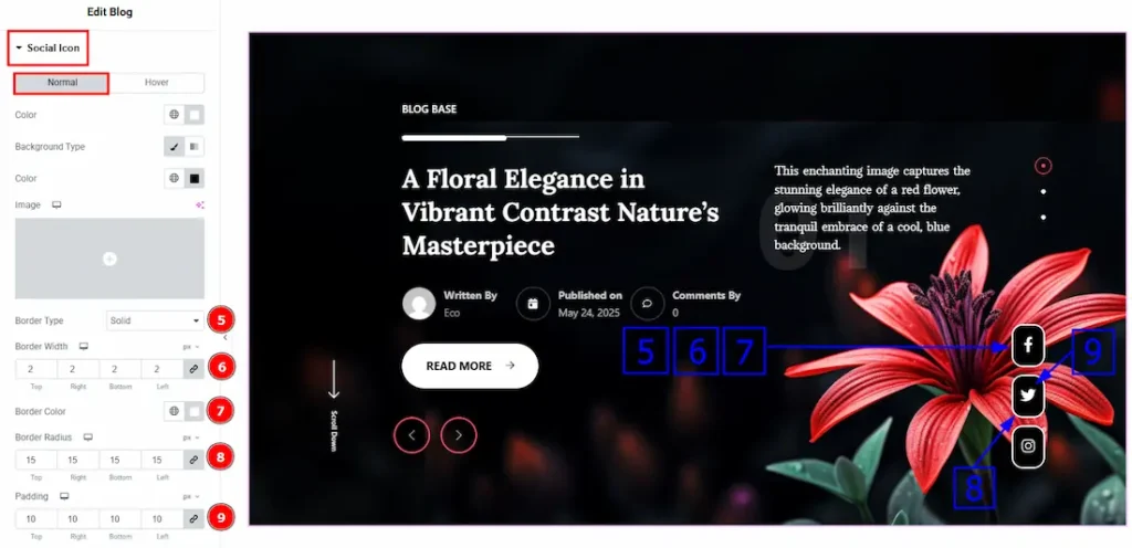 In this Section, we have two tabs. These are Normal & Hover. Let’s start with the Normal Tab –
