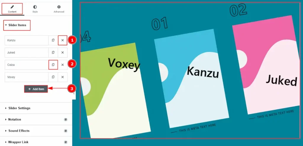 1. Close Item: You can delete the Slider item by clicking the Close icon button.