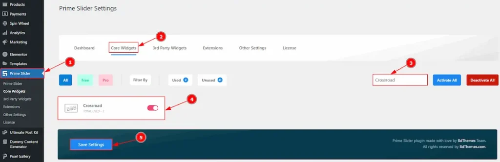 To use the Crossroad Slider from Prime Slider, first, you have to enable the widget.