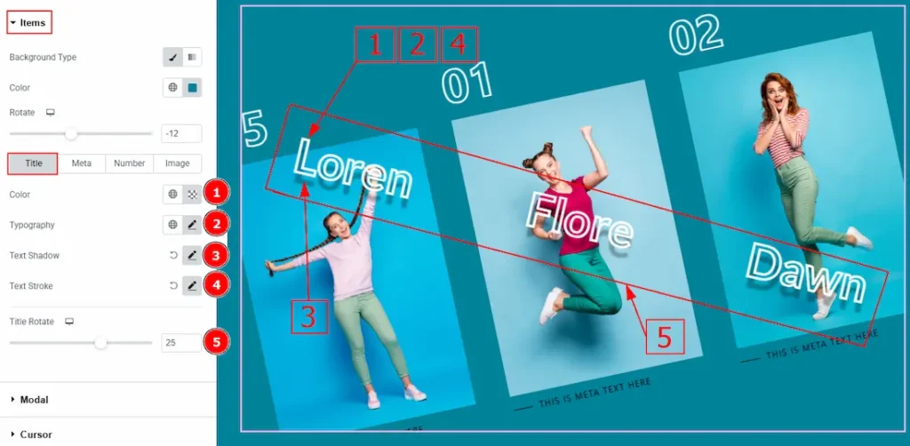 5. Title Rotate: You can rotate the title with this option.