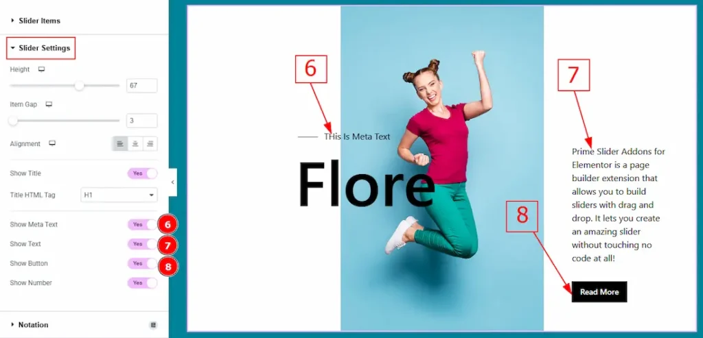 6. Show Meta Text: Enable the switcher to show the meta text to the audience.