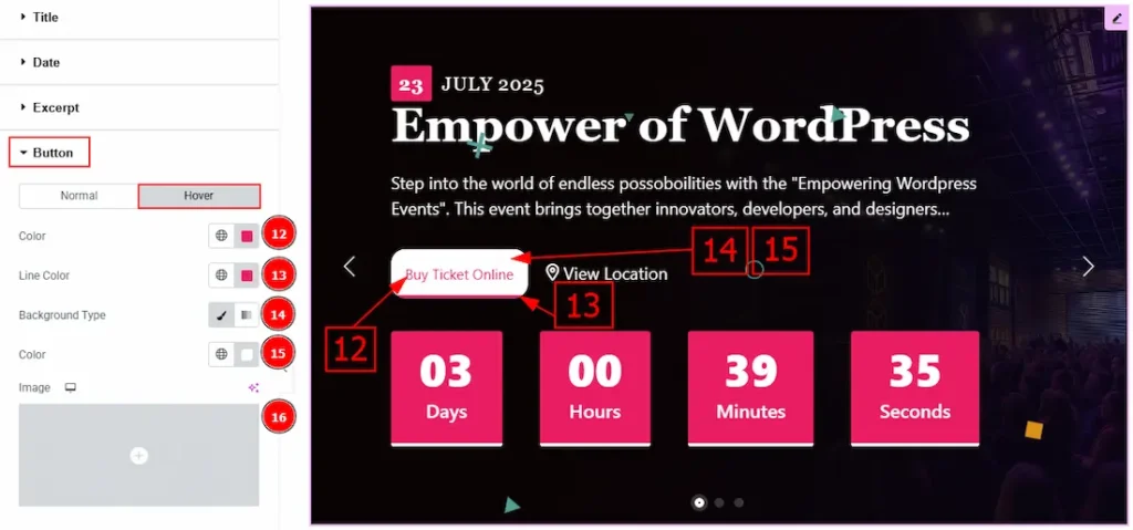 12. Color: You can change the button text hover color with this option.