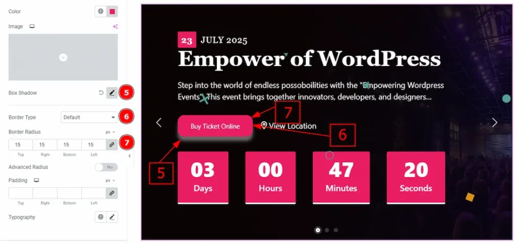 9. Text Typography: Change the font family, size, weight, transform, style, decoration, line height, letter spacing, and word spacing from here.