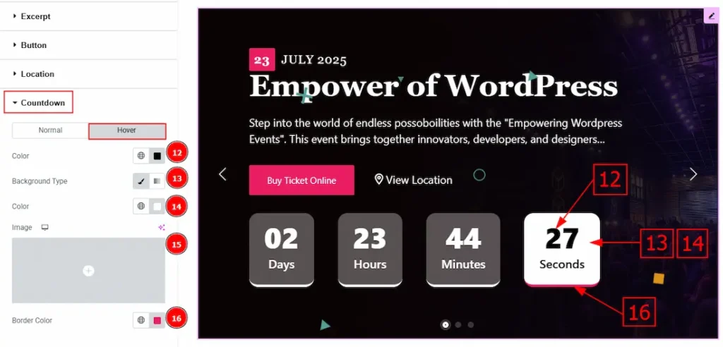 12. Color: You can change the countdown number hover color with this option.