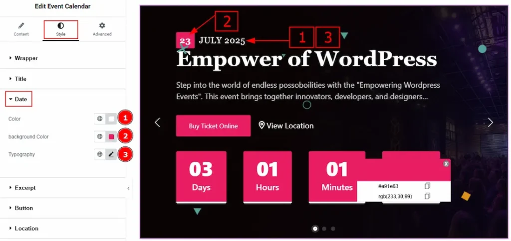 1. Color: You can change the date text color with this option.