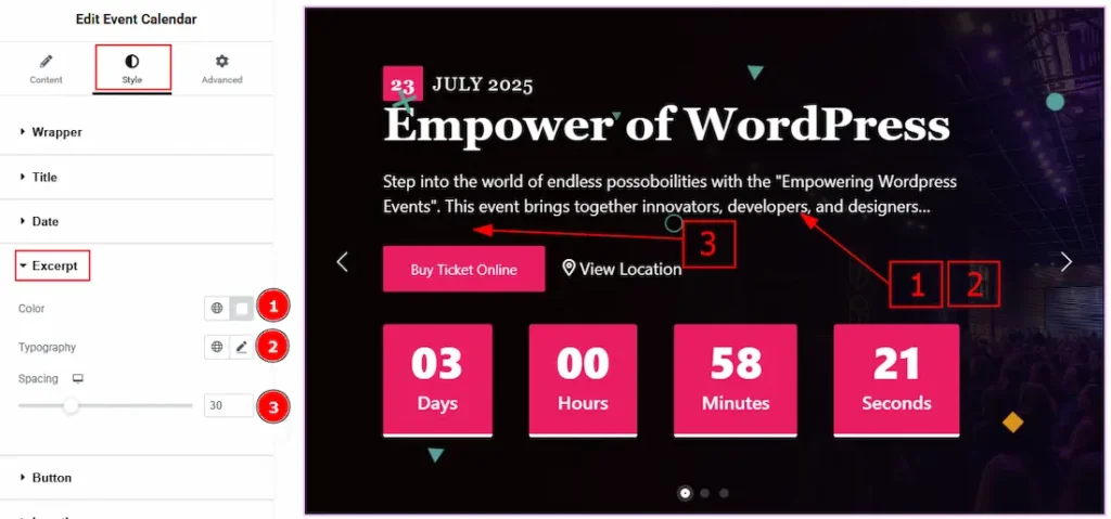 1. Color: You can change the excerpt text color with this option.
