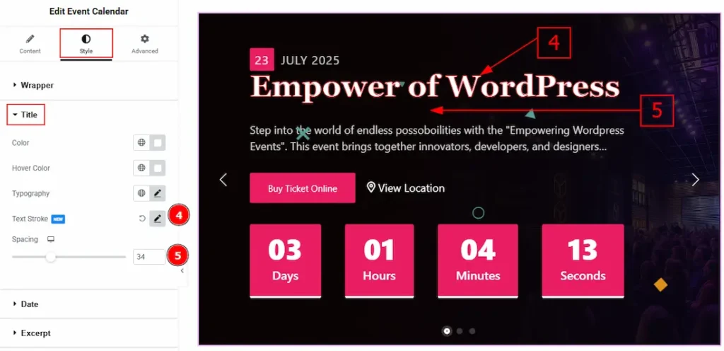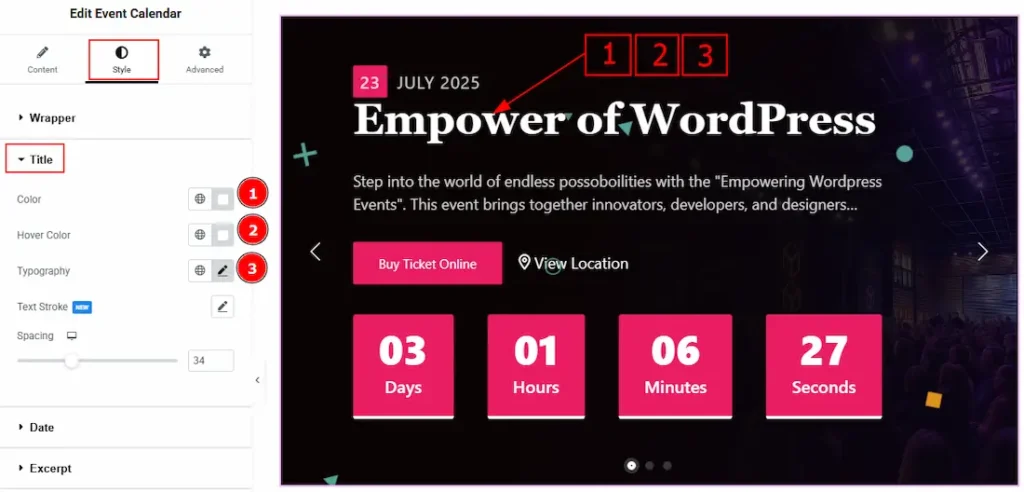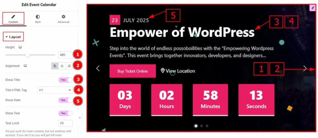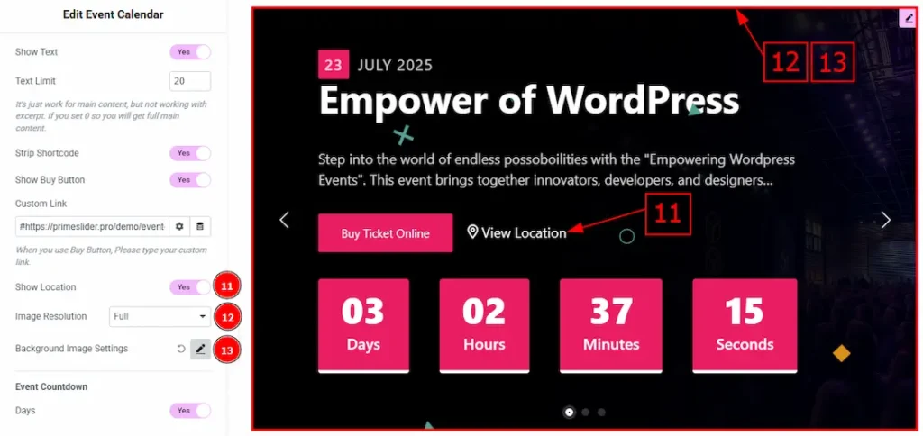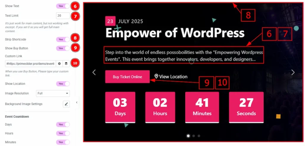 5. Show Date: Enable the switcher to show the event date on the slider.