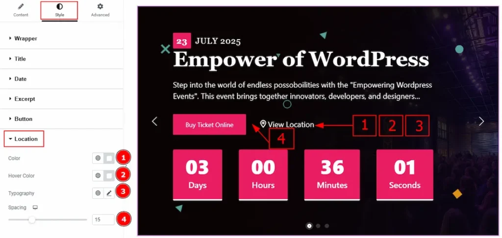 2. Hover Color: You can change the location text hover color with this option.