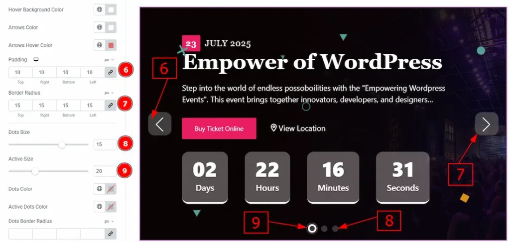 5. Arrows Hover Color: You can change the arrow’s hover color with this option.