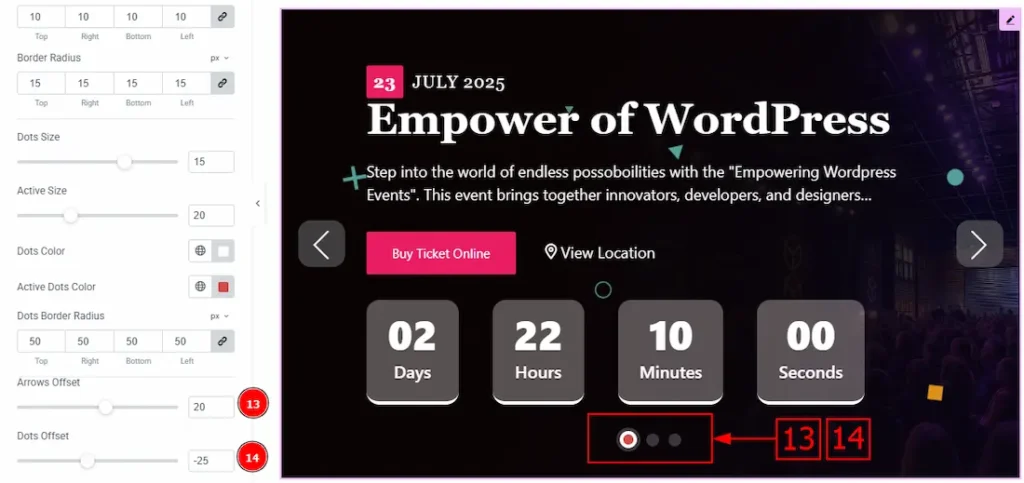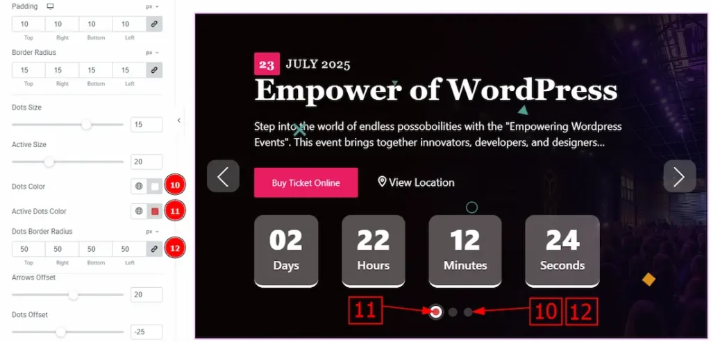 12. Dots Border Radius: This option controls the roundness of the dots border with this option.