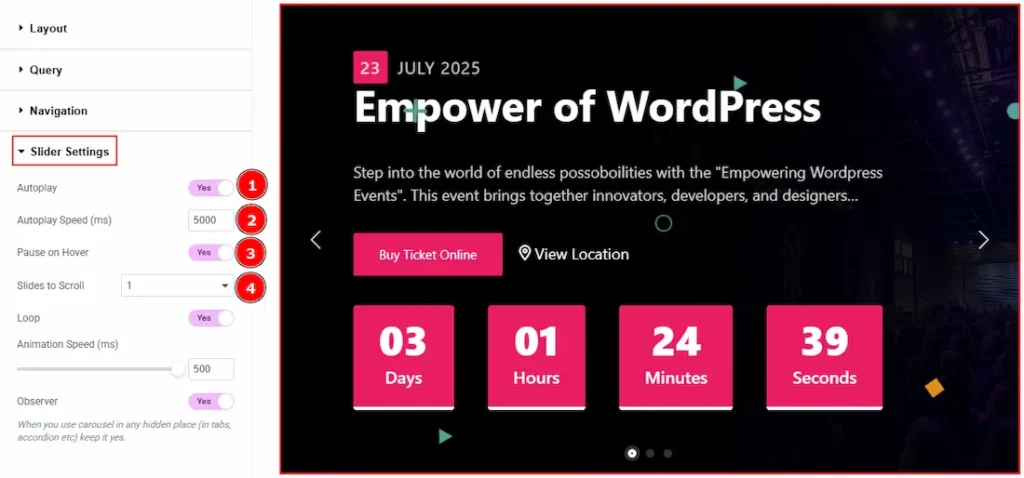 3. Pause on Hover: Enable the switcher to pause autoplay when the user hovers over the slider.