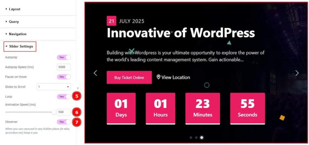 7. Observer: Enabling this option helps the slider function correctly when it’s initially hidden.
