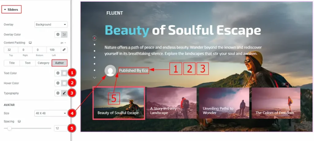5. Spacing: You can adjust the space & gaps between the avtar and the text with this option.