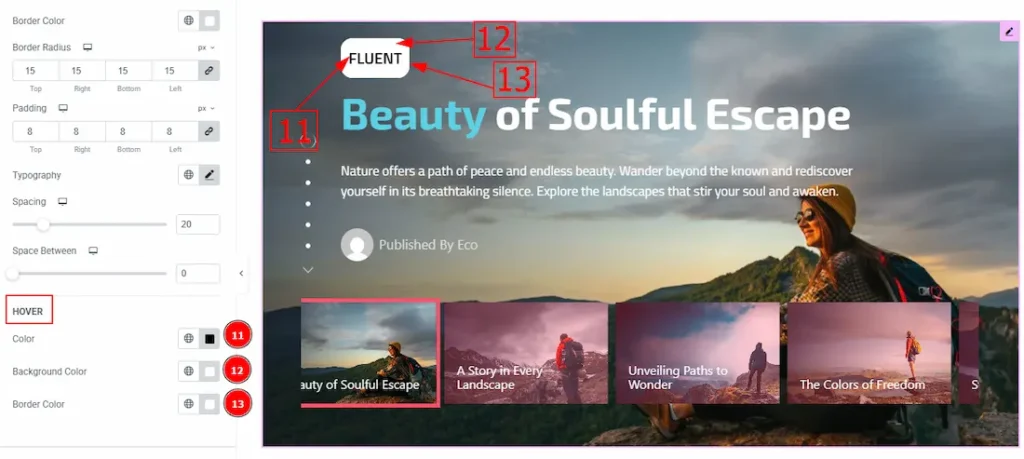 9. Typography: Change the font family, size, weight, transform, style, decoration, line height, letter spacing, and word spacing from here.