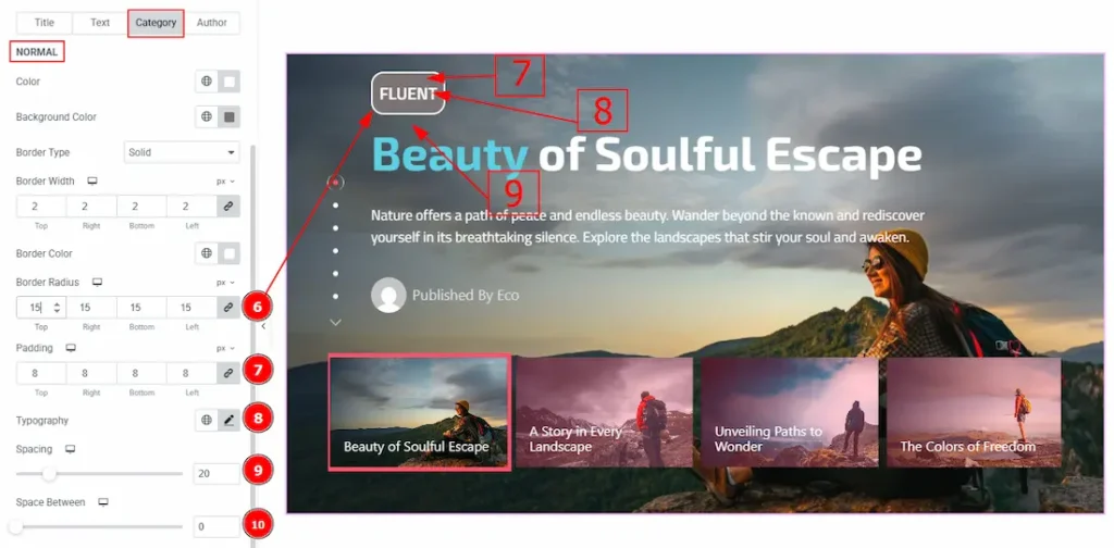 9. Spacing: You can adjust the space between the category and the title with this option.