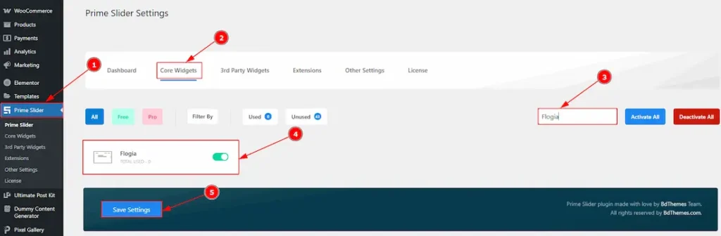 To use the Flogia Slider from Prime Slider, first, you have to enable the widget.