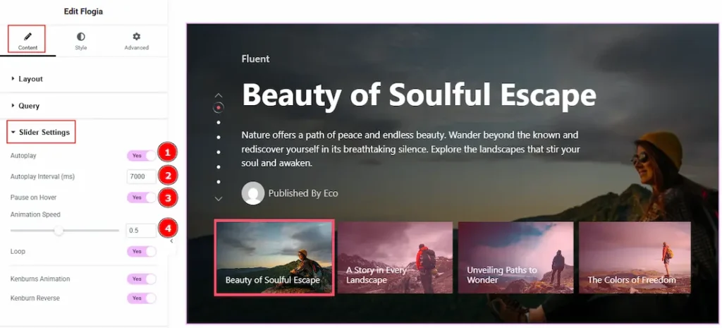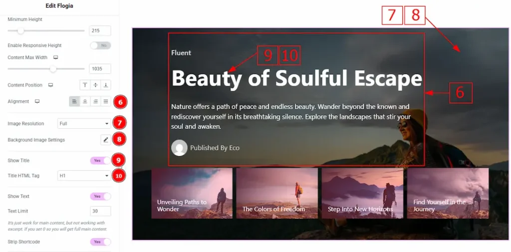 In this documentation, we will discuss the customization of the Flogia Slider, brought to you by the Prime Slider addon for Elementor.