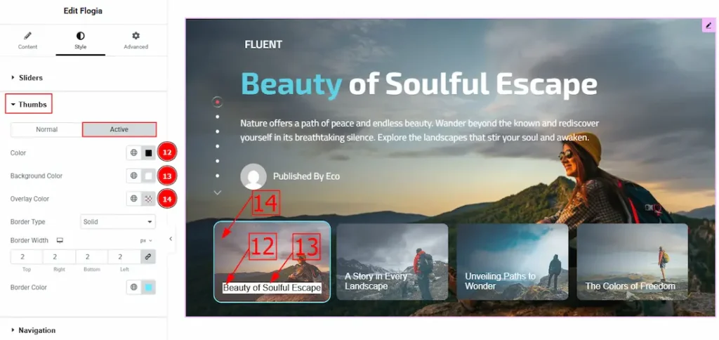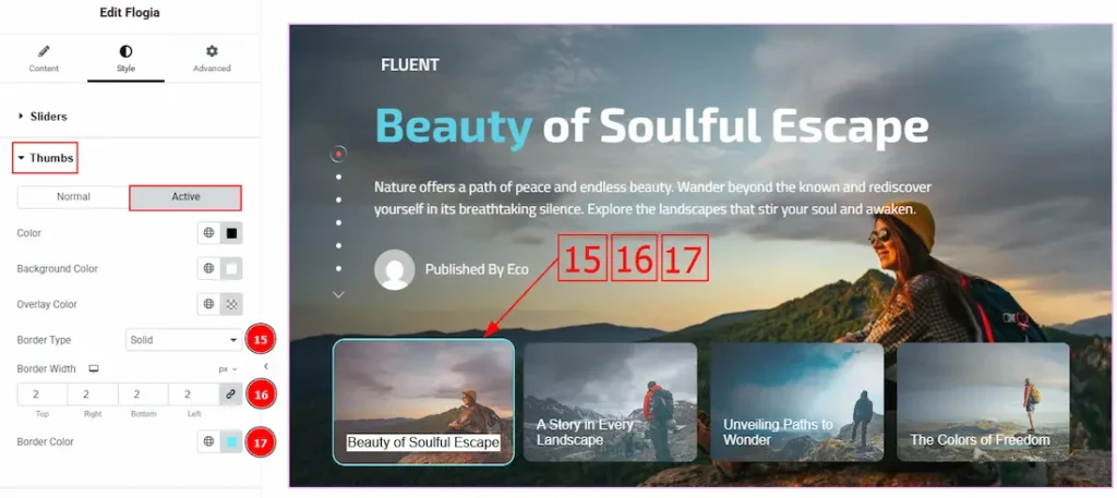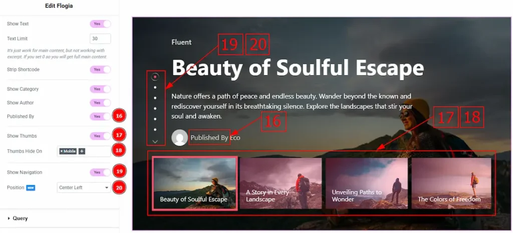 17. Show Thumbs: Enable or disable the switcher to show or hide the thumbnails from the slider.