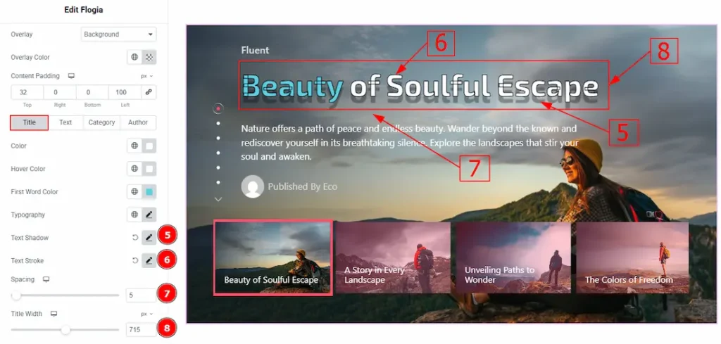 8. Title Spacing: This option allows you to adjust the space and gaps between the title and the excerpt.
