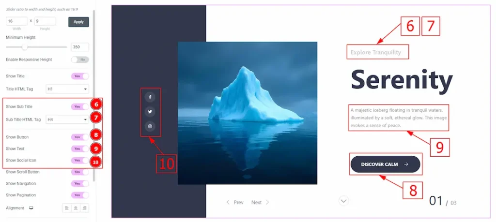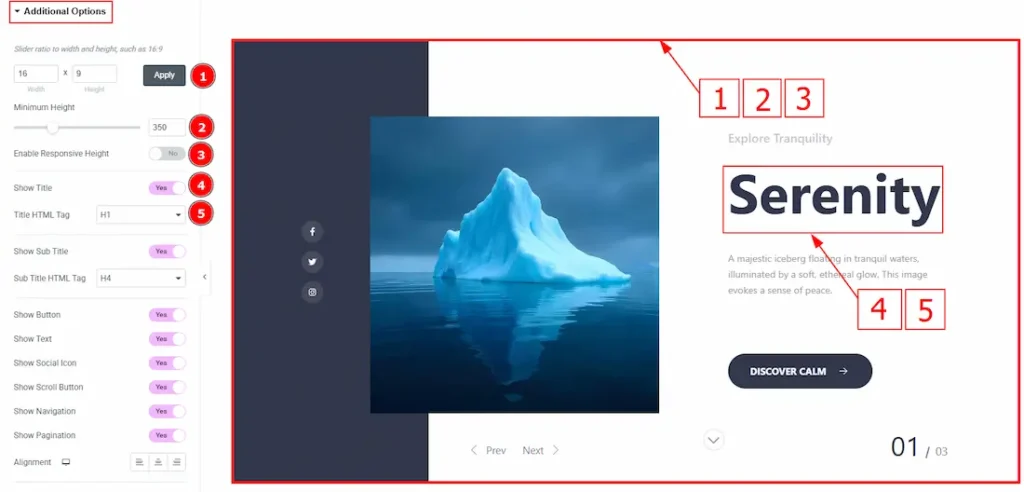 1. Slider Ratio: You can adjust the slider ratio to width & height with this option.