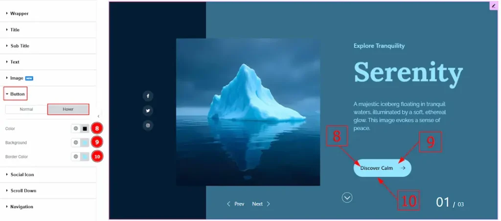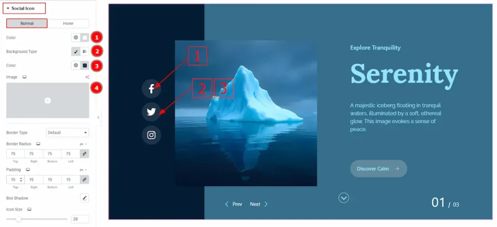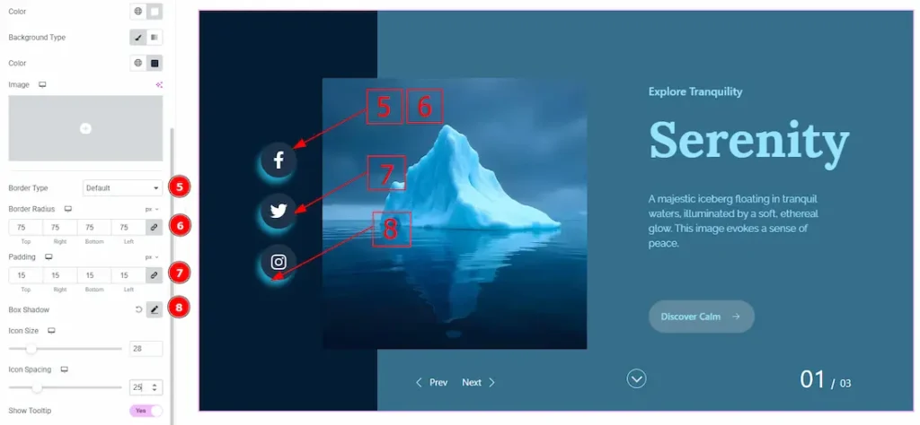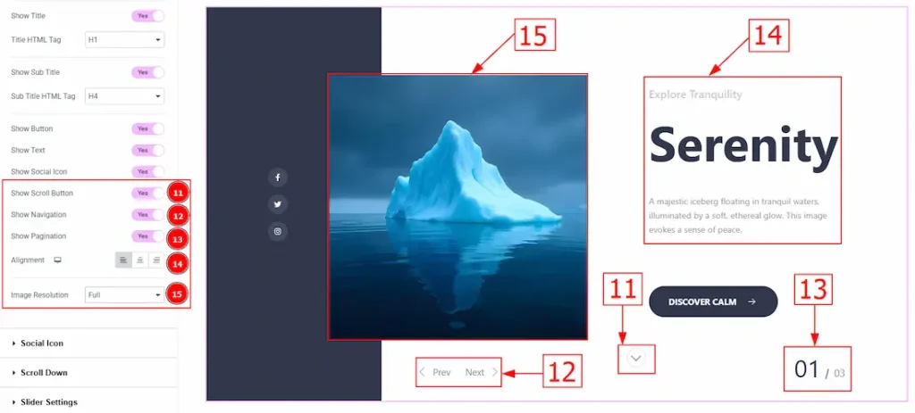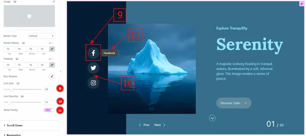 10. Show Social Icon: By enabling this switch, you can make the social icons visible.