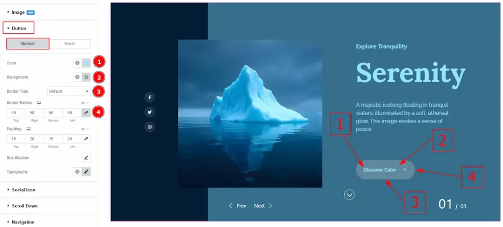 In this Section, we have two tabs. These are Normal & Hover. Let’s start with the Normal Tab –